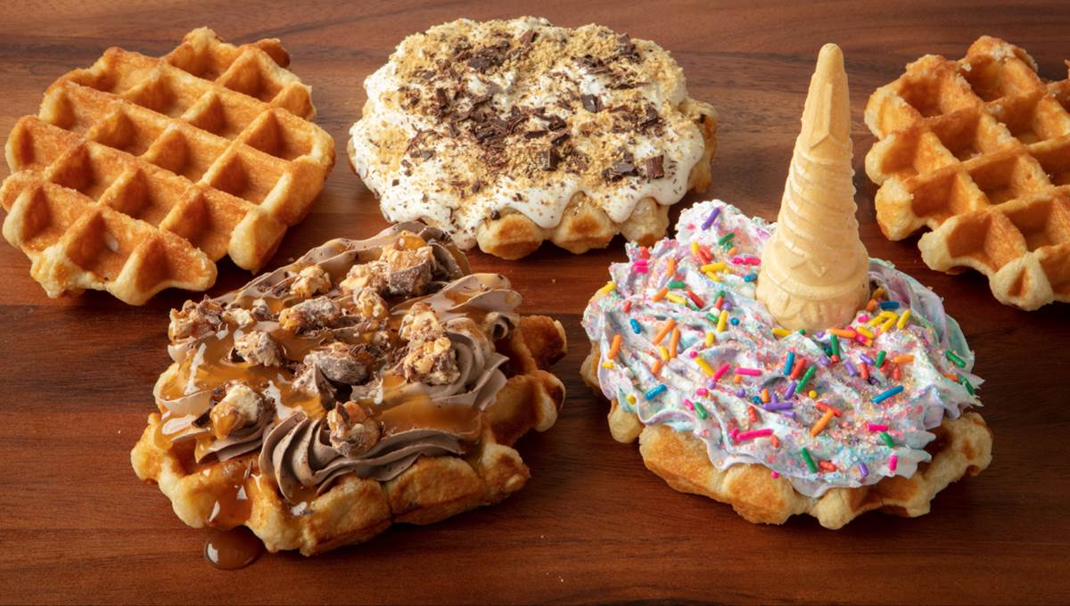 - There are also Belgian Waffles with a choice of S’mores, Snickers Bar or the fancy, colorful Unicorn, and much more.