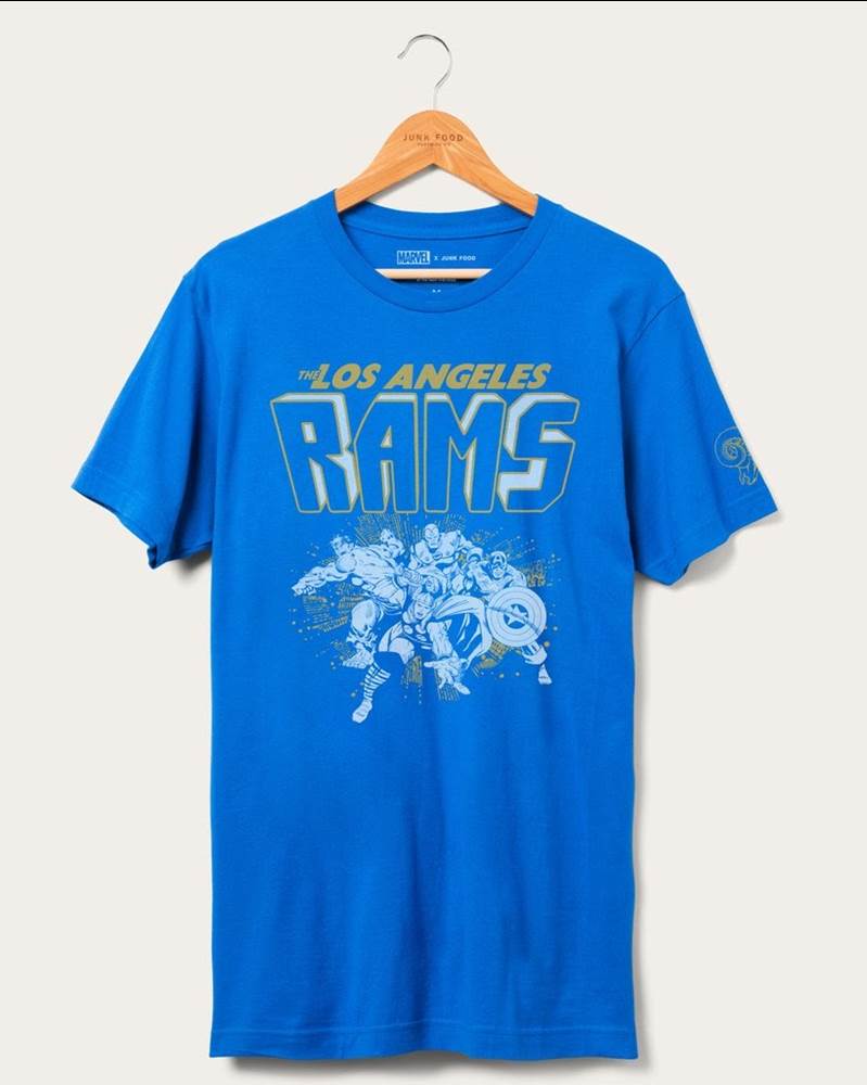 - "The Avengers Throwback" Tee - 1970s-era comic book character art of Captain America, Iron Man, Thor and The Hulk accompanies NFL team names in the iconic slanted font.