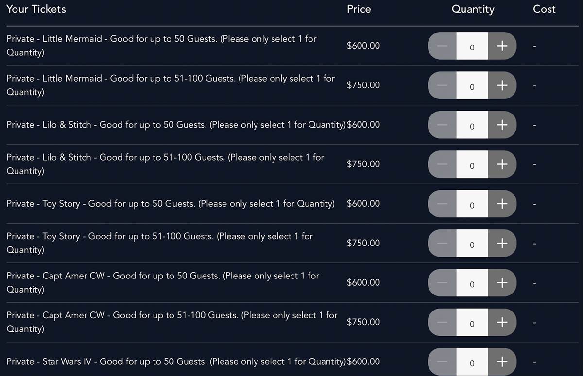 - Screenings for 1-50 guests will cost $600, while 51-100 guests will cost $750 per screening.