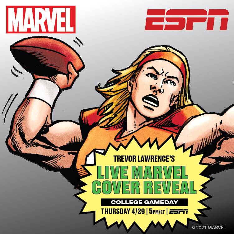 ESPN and Marvel Entertainment have teamed up for the NFL Draft this year, creating custom comic book covers that depict seven NFL Draft prospects with Trevor Lawrence’s cover being revealed on Thursday, April 29.