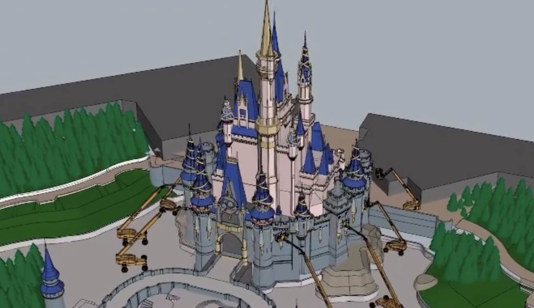 - WDI had a laser scan of the castle brought into a 3D model environment to then help creative concept designers with the sizing of décor that is now placed on the castle.
