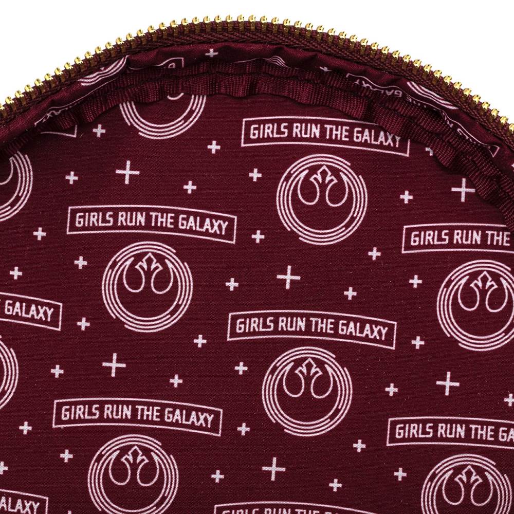 Inside the backpack is a deep maroon lining that includes the logo of the Rebellion, small stars and the words “Girls Run The Galaxy.” Women of Star Wars Backpack retails for £75.00 / €90.00 and will be available from Funkoeurope.com on May 4th.