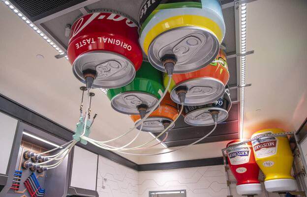 Next to WEB is Pym Test Kitchen, where Guests can come get food including items that had “Pym Particles” used by Ant-Man and The Wasp to grow and shrink. They didn’t only use it for food though, as you’ll see from the beverage and condiment locations.