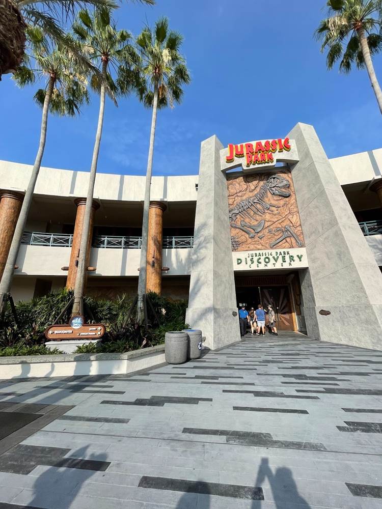 Fans of the Jurassic Park Discovery Center (an interactive area which was home to regular shows wherein guests could have the once in a lifetime opportunity to witness a live dinosaur hatch) might be a bit startled to see that the area modeled after the Visitor’s Center in the original Jurassic Park, has been transformed into the Velocicoaster Store, featuring pins, apparel, lanyards, cups, and more.