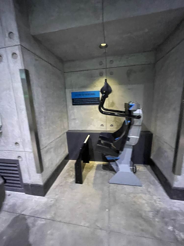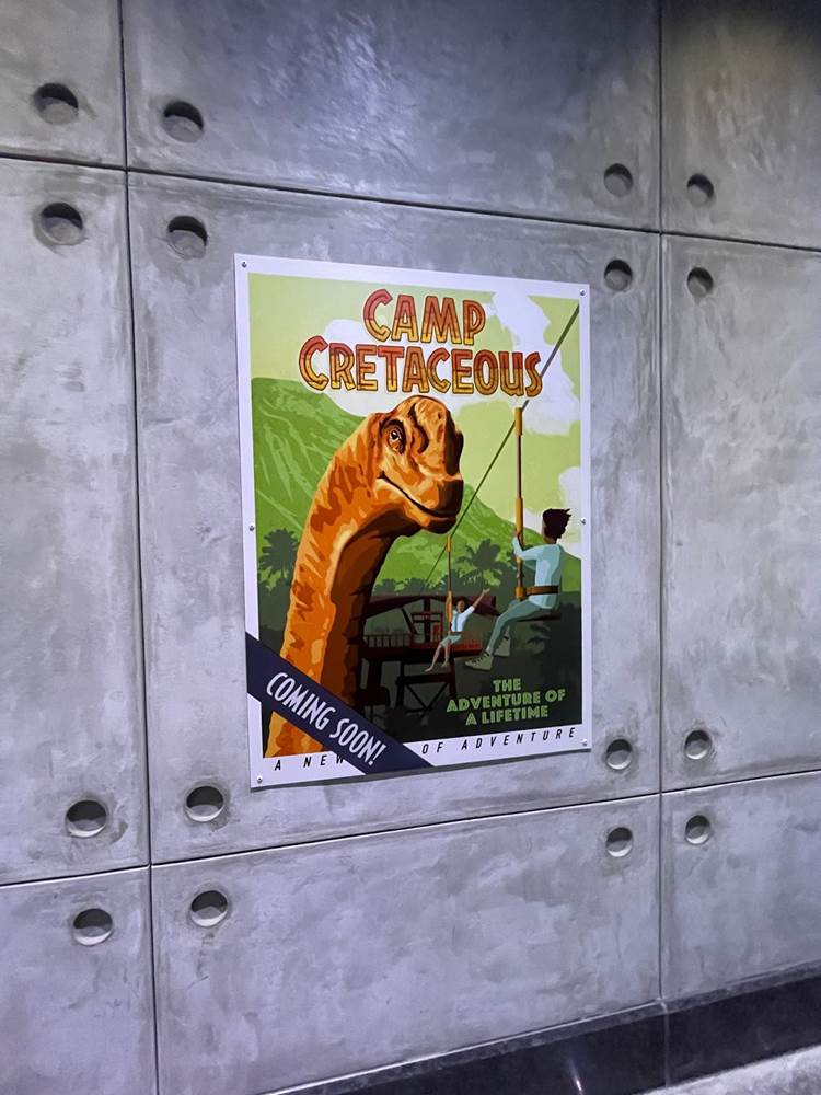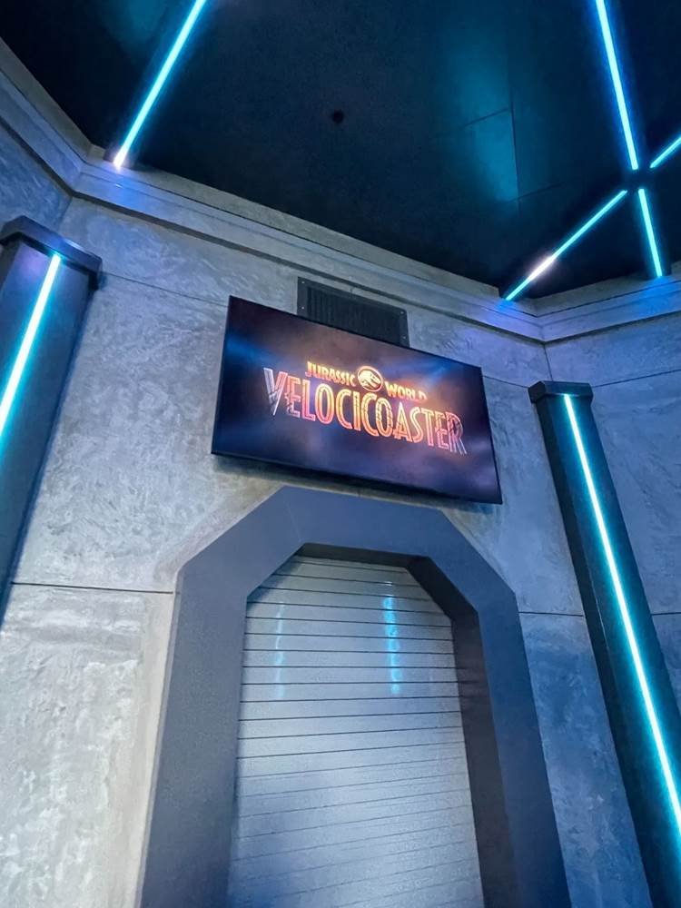 Similar to other coasters at the park, loose items and carry on bags and such are not allowed, and must be stowed in a complimentary locker. The lockers are themed to different dinosaurs to help remember your location, and fans will likely delight over the posters marketing other attractions of Jurassic Park/World, two of which are marked as “coming soon.” Could this be a hint towards a retheme of Camp Jurassic into Camp Cretaceous and/or a refurbishment of the River Adventure to be more like Jurassic World: The Ride at Universal Studios Hollywood? Also, as most coasters in the park feature a test seat, so does Jurassic World Velocicoaster.