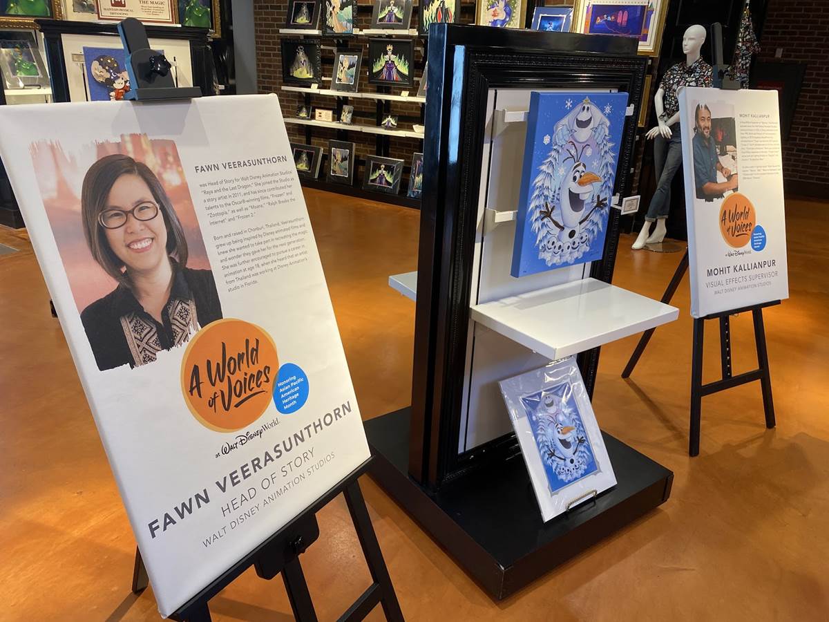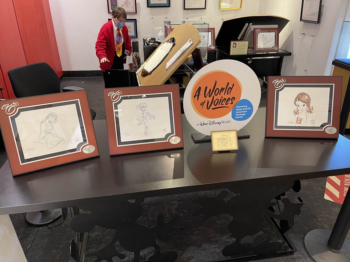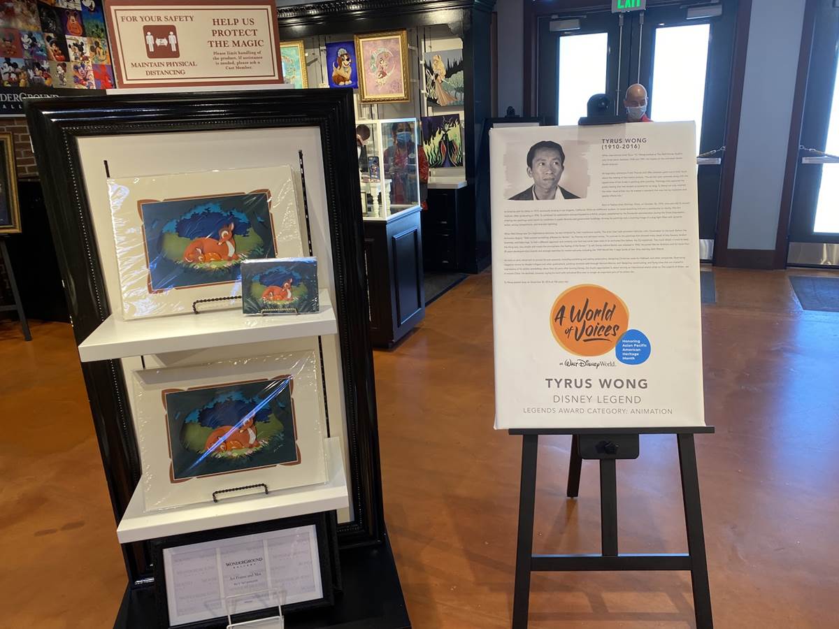 Over in the Marketplace section of Disney Springs, guests can check out the artist spotlight series at The Art of Disney where there is a focus on Asian Pacific American filmmakers, artists, authors and screenwriters who work or have worked at the Walt Disney Animation Studios including: Qui Nguyen, Mohit Kallianpur, Fawn Veerasunthorn, Willie Ito, Gyo Fujikawa, Milton Quon, and Disney Legend Tyrus Wong. Alongside the posted biographies of the artists, different pieces featuring the characters from their work are on display and for sale.