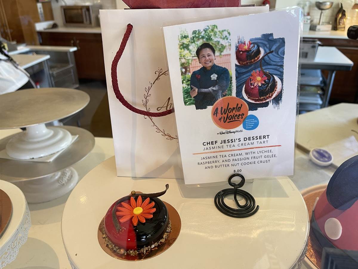 This month, Disney Springs is highlighting Chef Jessi Sudsa-nguan, Pastry Sous Chef at Amorette’s Patisserie. Originally from Bangkok, Thailand, Chef Jessi has been with Walt Disney World Resort for over 30 years and has worked at many of the Disney Resorts including Aulani, A Disney Resort & Spa in Hawaii. She is currently lending her culinary talents in the daily production of the incredible cakes and pastries you know and love at Amorette’s Patisserie, and for Asian Pacific American Heritage Month, Chef Jessi has whipped up her Jasmine Tea Cream Tart — a light dessert with fruit gelee and a butter and nut cookie crust honoring her favorite Asian teas and flavors with a unique twist.