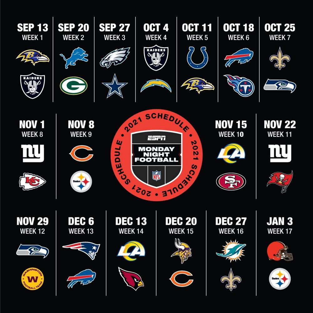 - Each game of the 2021 Monday Night Football campaign features compelling storylines and intriguing matchups.