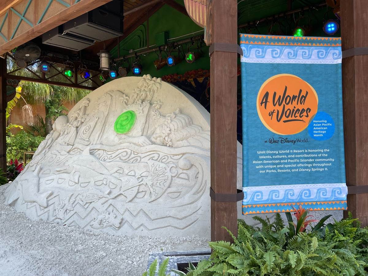 First up, the sand sculpture on Discovery Island, across from the Tree of Life, has been changed to Disney’s animated hit film Moana. This is in honor of Asian Pacific American Heritage Month as Walt Disney World continues to honor the talents, cultures and contributions of the Asian American and Pacific Islander community with unique and special offerings throughout the parks and resorts.