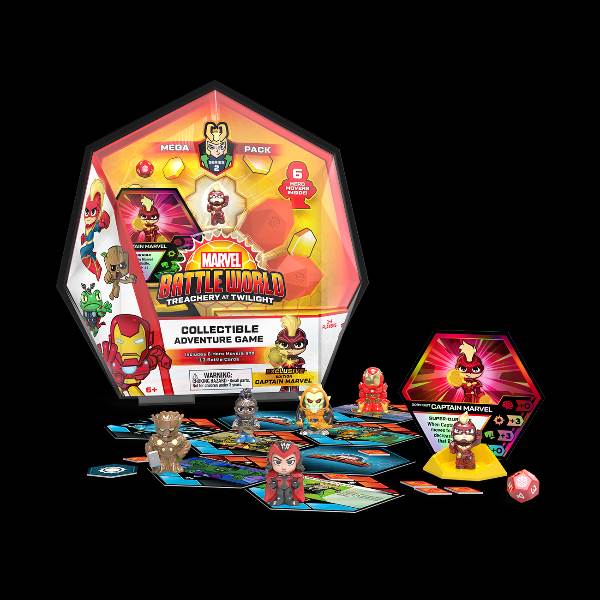 - “Pick your favorite Hero, rescue your friends, and win battles to defeat Thanos! Battleworld is a revolutionary, cooperative, expandable, collectible adventure game featuring dozens of characters from all over the Marvel Universe! Players get to crack open the mysterious Thanostones during the course of play to reveal the mystery character inside for a constant sense of surprise and delight! Mega Packs let you jumpstart your collection with six characters: four starting Heroes [including an exclusive Loki (Frost Giant) variant] and two more trapped in Thanostones!”