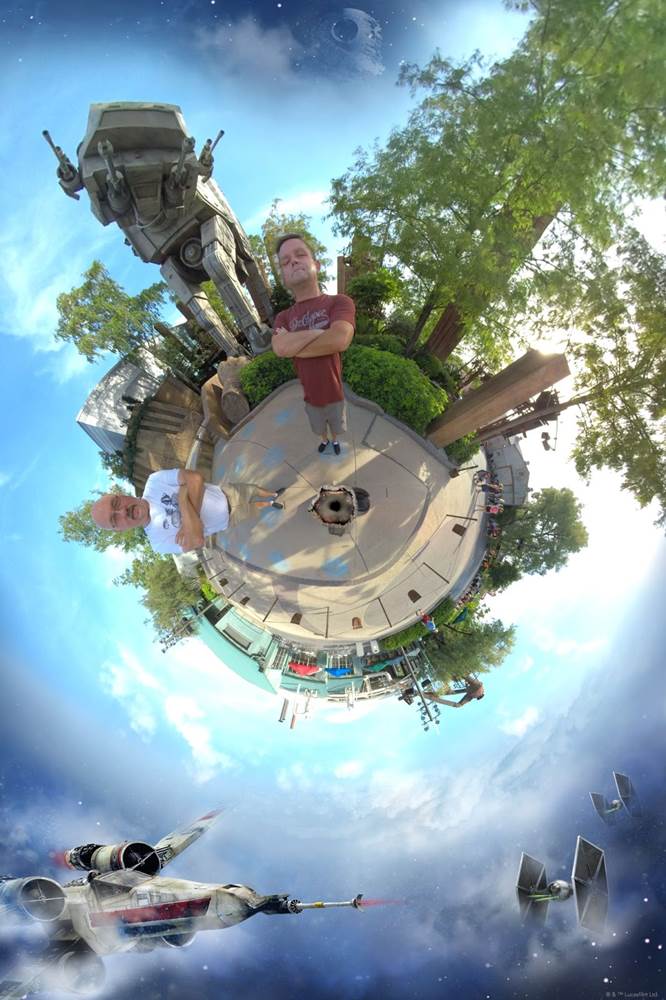 A Disney PhotoPass camera will assist you with your photo, having your party stand around the camera. They step out of the shot as the camera rises up on it’s stand to capture an incredible composite that makes it look like you and your party are standing on a tiny world.