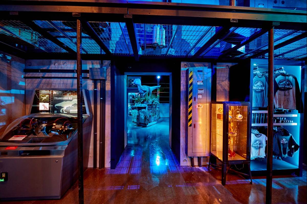 - Control Room: The first room transports guests to the Jurassic World VelociCoaster control room, where they’ll analyze a variety of dinosaur vitals while they shop new merchandise centered around the thrilling new coaster experience.