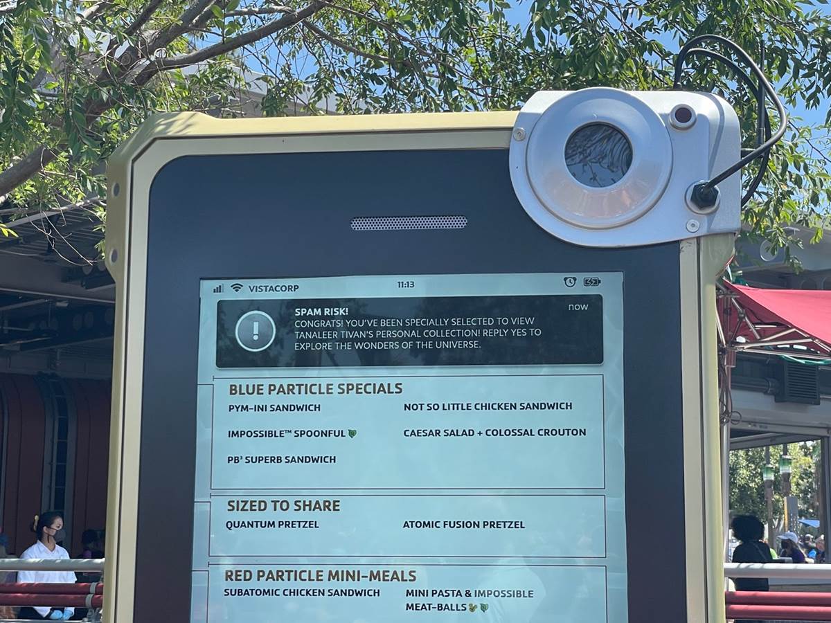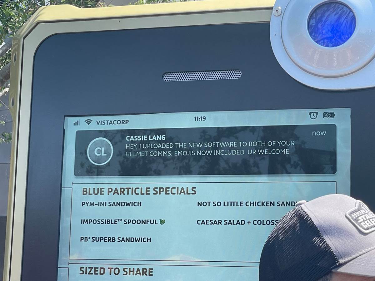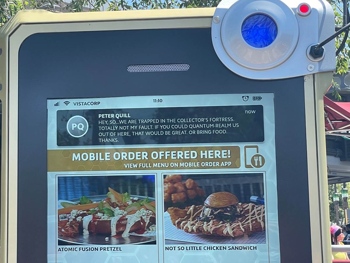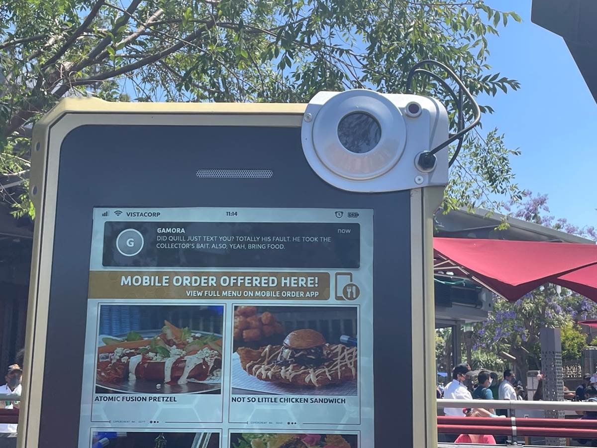 Near Pym Test Kitchen and the Pym Tasting Lab, you’ll see a digital menu board showing you all the offerings available via a giant smartphone, but you’ll also notice that smartphone receiving some notifications from Marvel characters.