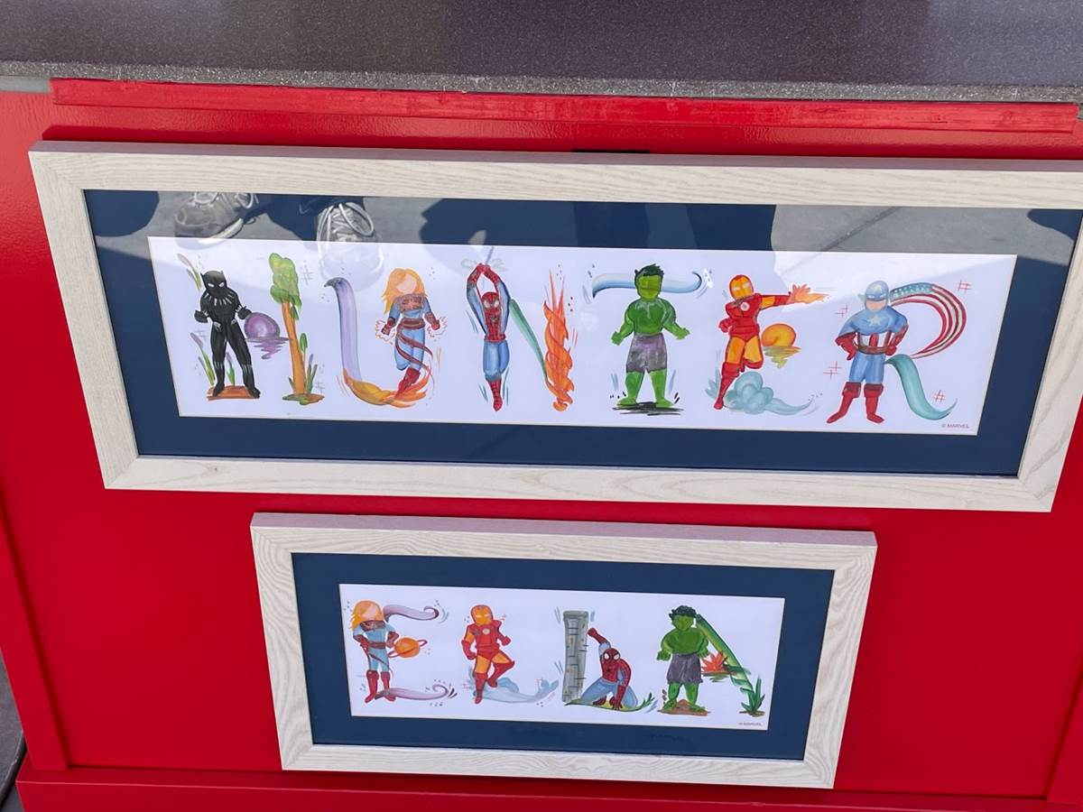 - The Marvel Super Heroes kiosk offers personalized art featuring some of your favorite heroes in poses spelling out your name.