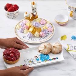 “Whip up some tasty dishes with Disney’s Beauty and the Beast-inspired collection featuring some of your favorite characters including, Belle, Chip, Lumiere and Cogsworth. It’ll be the perfect dinner party with themed apparel, measuring cups and more!”