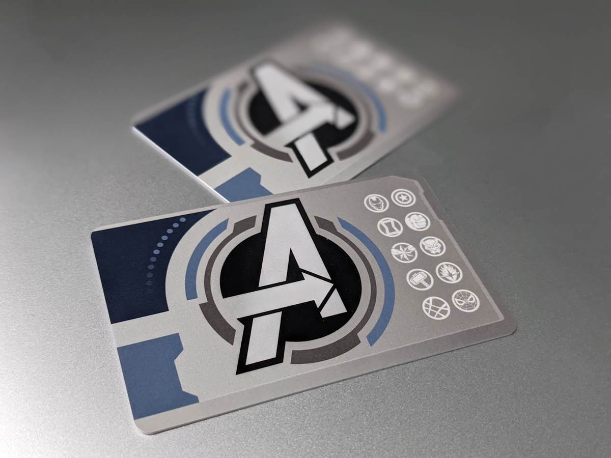 - The gift card is decked out with the Avengers logo, and is accented by smaller logos representing the various heroes.