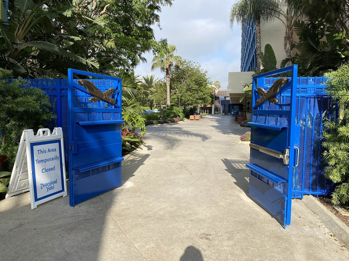 - New gates have appeared at the Downtown Disney entrance of the Disneyland Hotel, with equipment installed to scan keys/credentials to grant access to hotel guests.