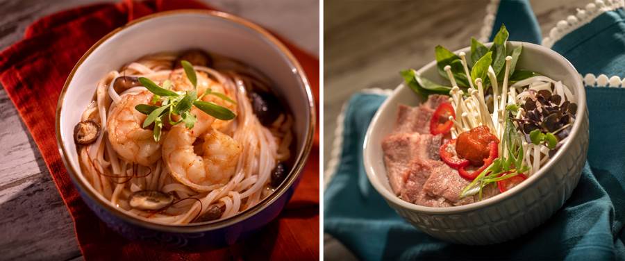 - Traditional Spicy Vietnamese Beef Pho with Shaved Beef, Enoki Mushrooms, and Thai Basil (gluten/wheat friendly; new)