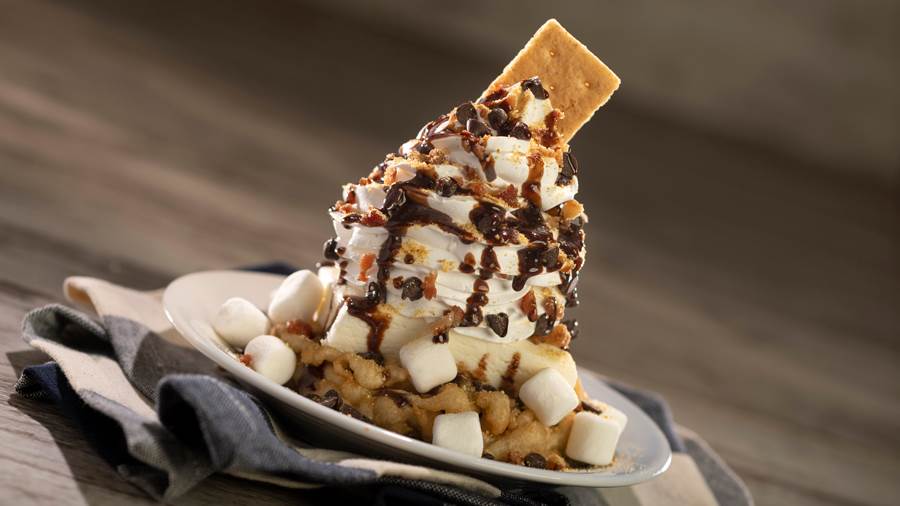 - Mini Candied Bacon S’mores Funnel Cake with Vanilla Ice Cream