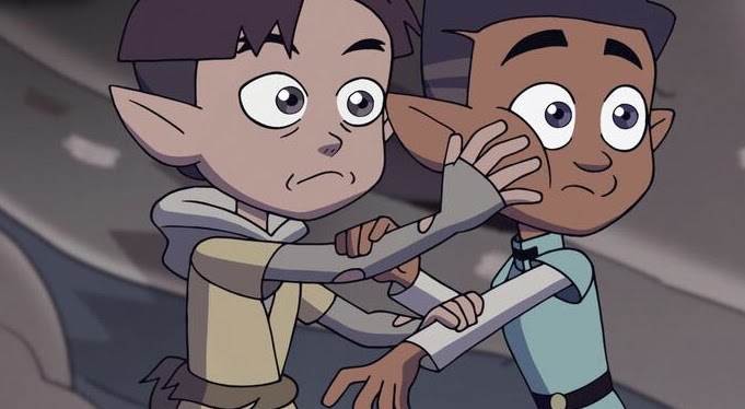 Mattholomew had acquired a map to acquire the legendary galderstones, powerful stones that will amplify magic spells. The group invites Gus to join them on their quest but “Matty” doesn’t want him there since he’s only an illusionist and will hold them back. As Gus tries to retreat anyway and go help Luz (who was hiding thanks to an invisibility spell we know she learned earlier this season), he is encouraged by his friend to go with them and hands him a stack of glyphs to “help prove that jerk wrong.”