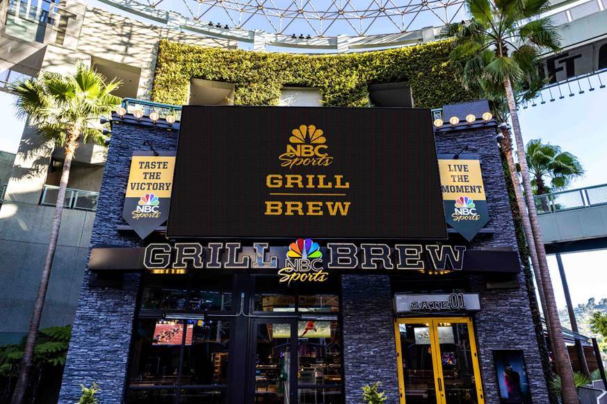 - With an array of HDTV screens broadcasting continuous, in-depth sports coverage, NBC Sports Grill & Brew is prepared to offer guests the MVP treatment. Visitors can enjoy dining upon converted shuffleboard and foosball tables amid sports-inspired décor, including specially commissioned art pieces and a custom neon NBC peacock logo.