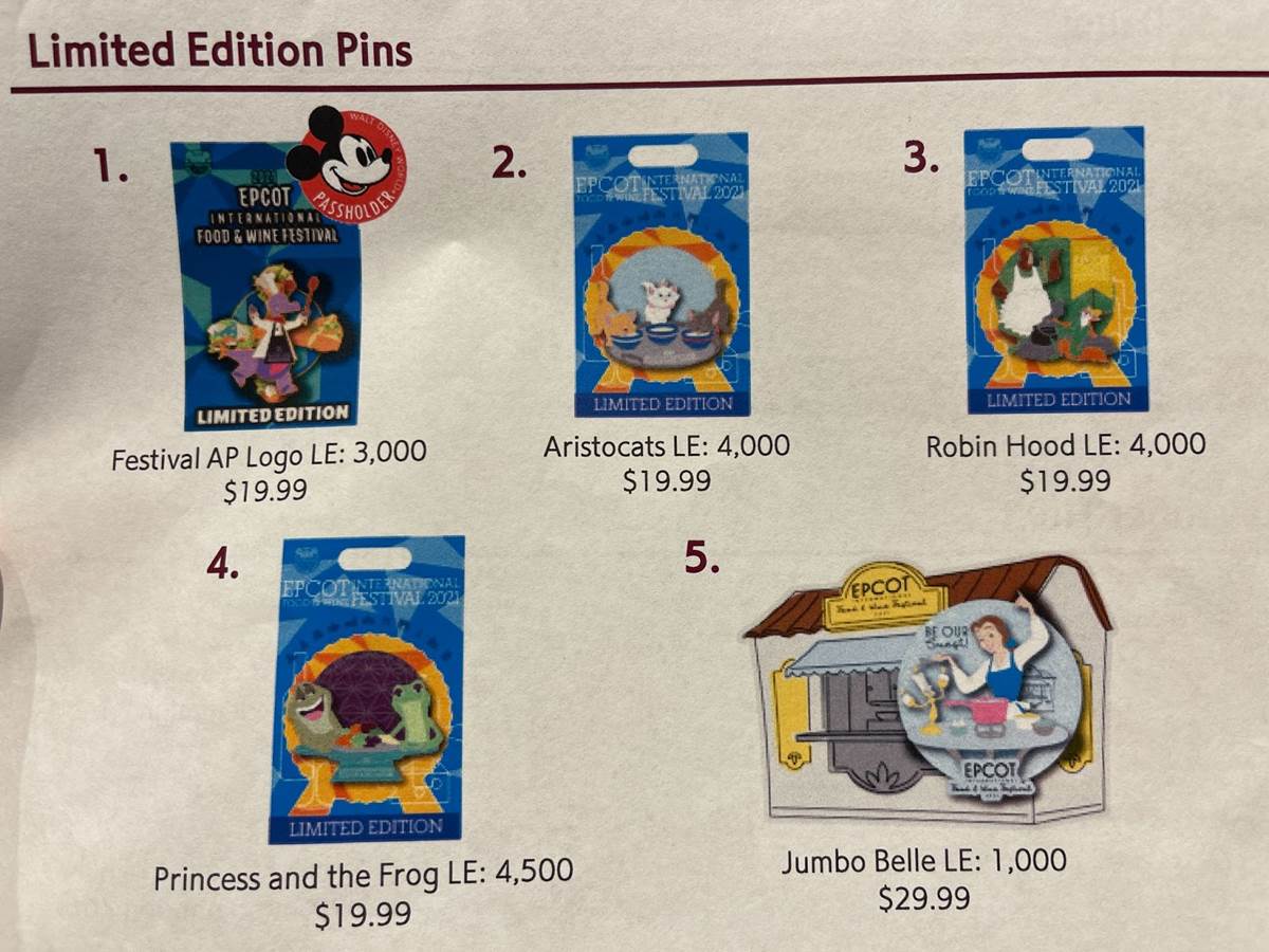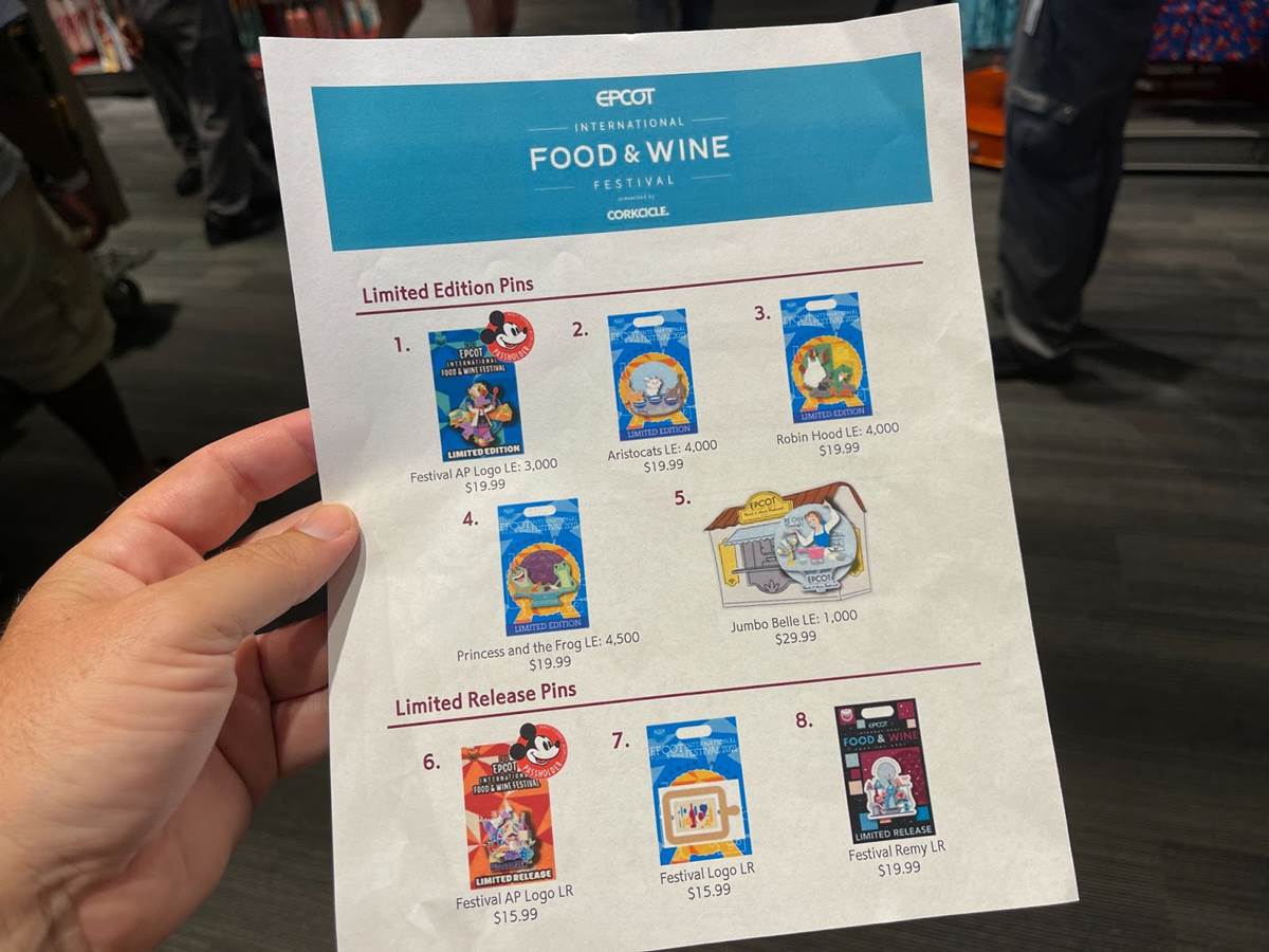 While we couldn’t get any photos of the pins themselves, EPCOT also has a variety of limited edition and limited release pins.