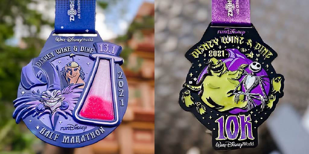 - The 2021 Wine & Dine Half Marathon is just a few months away, and Disney is helping fans get excited for the annual runDisney event by sharing a look at the various race medals.