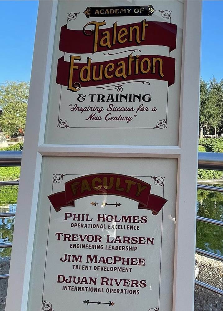 - The window is for the Academy of Talent Education and Training - “Inspiring Success for a New Century,” and has the faculty as Phil Holmes - Operational Excellence, Trevor Larsen - Engineering Leadership, Jim MacPhee - Talent Development, and Djuan Rivers - International Operations.