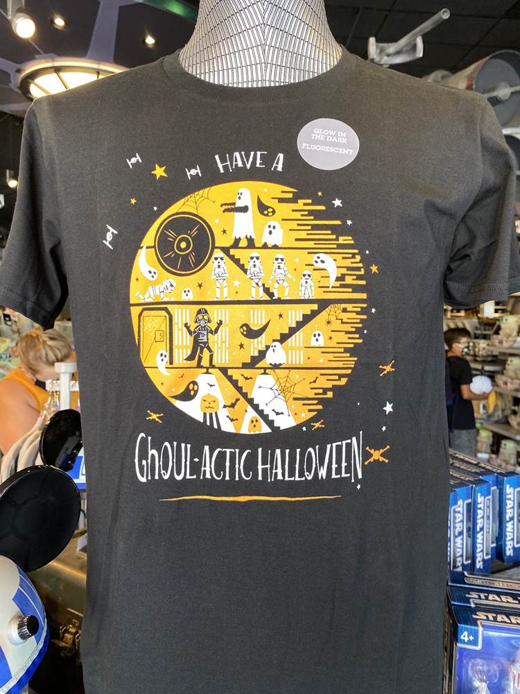One thing we noticed during our live walk and talk through the park earlier was a new Halloween-themed Star Wars shirt, wishing everyone a ghoul-actic halloween!