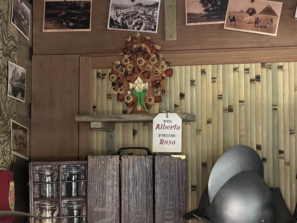 This recently installed mural of Alberta Falls and her family of Skippers at the Jungle Cruise inside Magic Kingdom Park is what Disney Imagineers have said marks the completion of the changes at the attraction, introducing the new characters created, new scenes and an expanded storyline as part of the attraction enhancements, establishing Alberta, granddaughter of the world-renowned Dr. Albert Falls, as the proprietor of the Jungle Navigation Company Ltd.