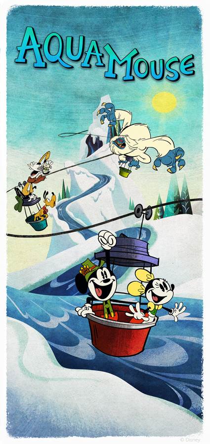- How do guests know which experience they’ll get aboard the AquaMouse? Posters (pictured on this page) will be displayed letting guests know which adventure is being featured on each day of their voyage.