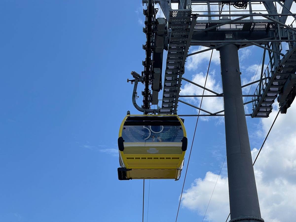 And it’s not just the ground transportation that’s getting in on the anniversary fun. We also saw a special wrap on one of the gondolas from the Disney Skyliner. Mickey and Minnie can also be seen on the gondola wrap, once again joined by Chip and Dale. A 50th logo and “World’s Most Magical Celebration” also adorn two of the windows. So now you can cruise the skies of Walt Disney World while also celebrating the upcoming 50th anniversary.