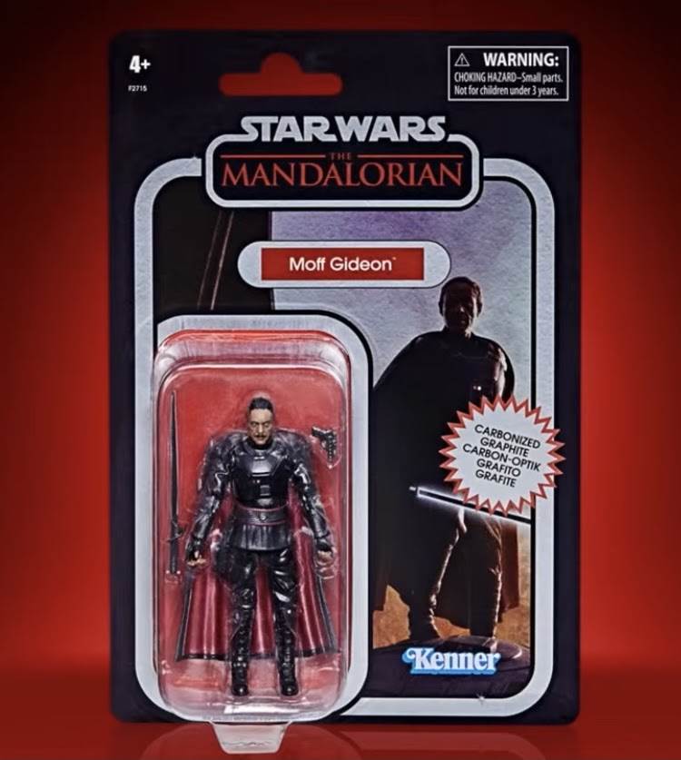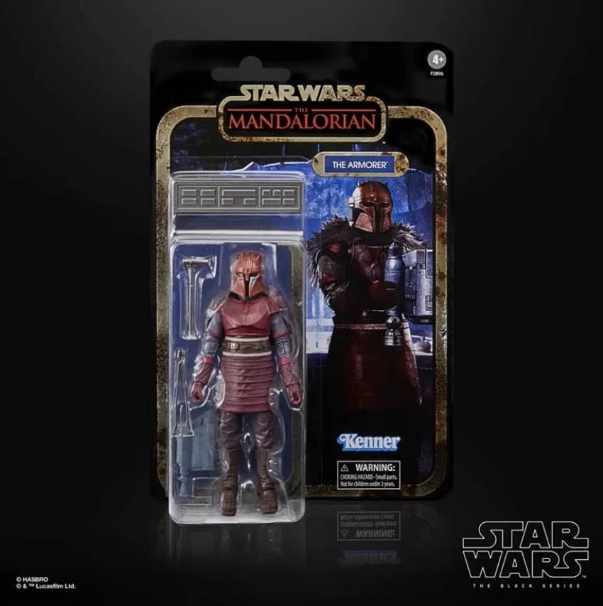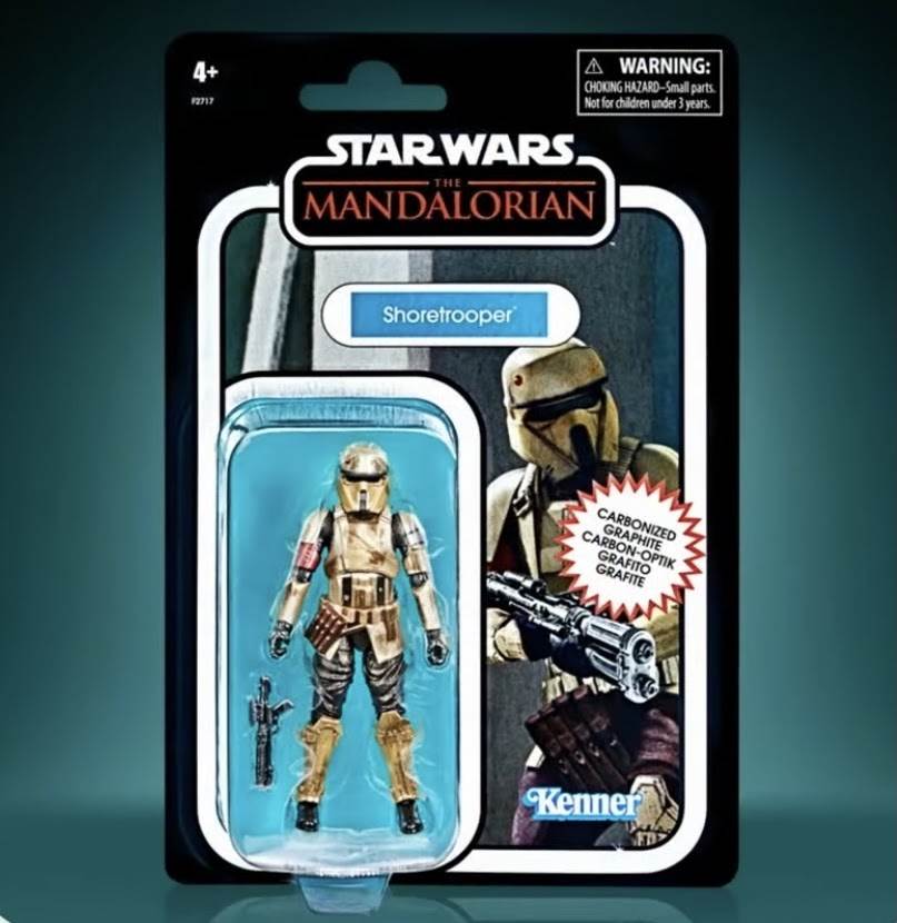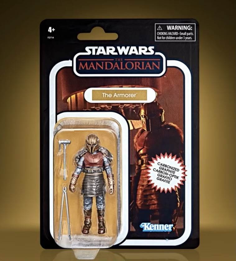 The next series features characters from The Mandalorian, in the new Hasbro Vintage Series carbonized collection. Characters that will be seen are, of course, The Mandalorian, Moff Gideon, The Armorer, a ShoreTrooper, and an Incinerator Trooper.