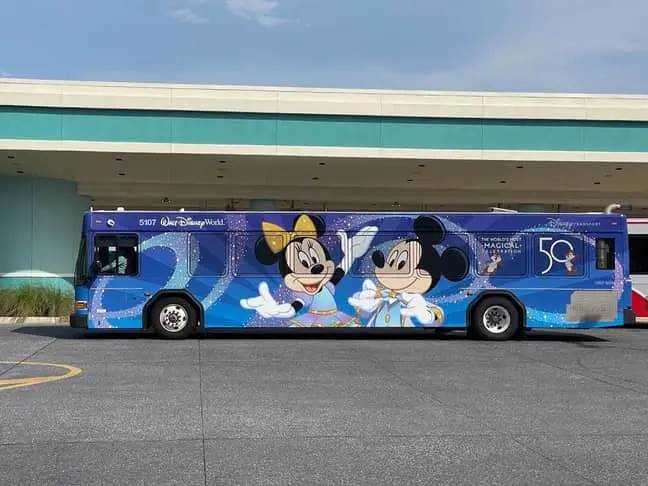 - Recently, we’ve also spotted Walt Disney World buses with a new “World’s Most Magical Celebration” wrap. The new design features Mickey and Minnie in celebratory outfits. They’re joined by Chip and Dale in EARidescent vests.