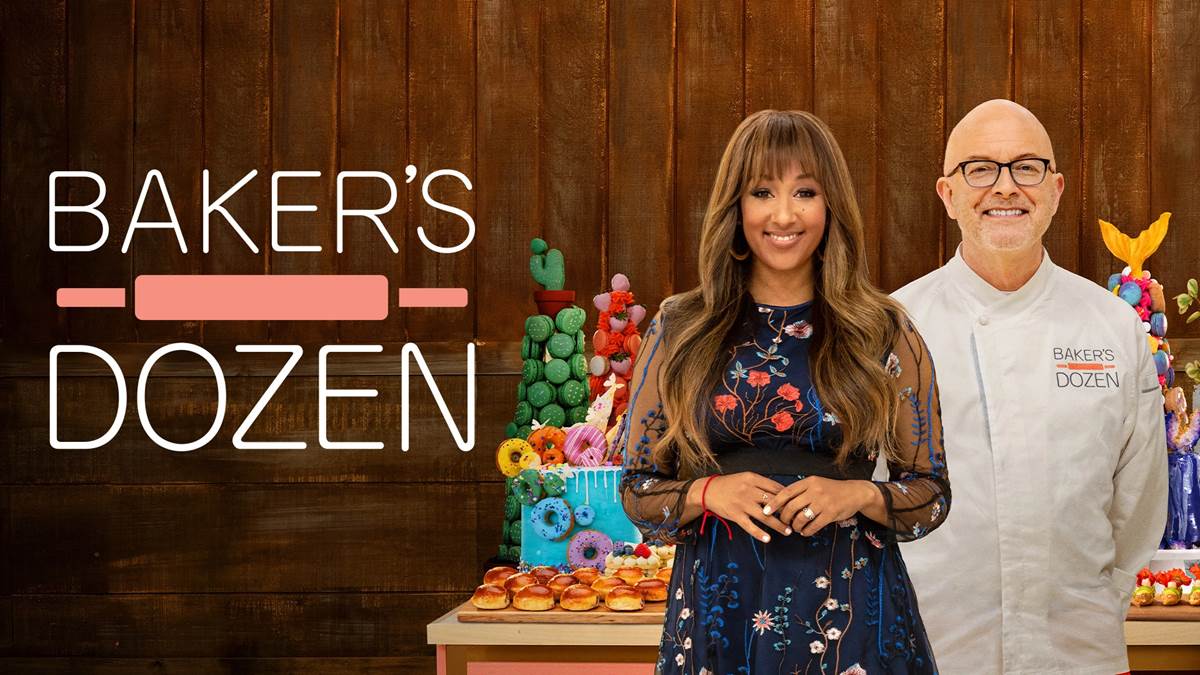 “Passionate amateur bakers will go head-to-head with seasoned professionals in each episode of Baker’s Dozen. Join hosts Tamera Mowry-Housley (Emmy-award winning host of The Real, FOX’s The Masked Singer and Hallmark’s Christmas Comes Twice) and Bill Yosses (Author and former White House Pastry Chef) for this fast-paced competition series that will determine the best baker of all! Which of the 13 bakers has what it takes to create the next viral baking sensation, win the golden rolling pin and take home the cash prize?”