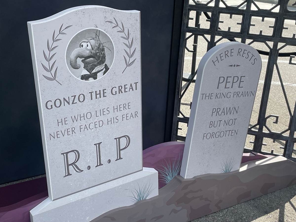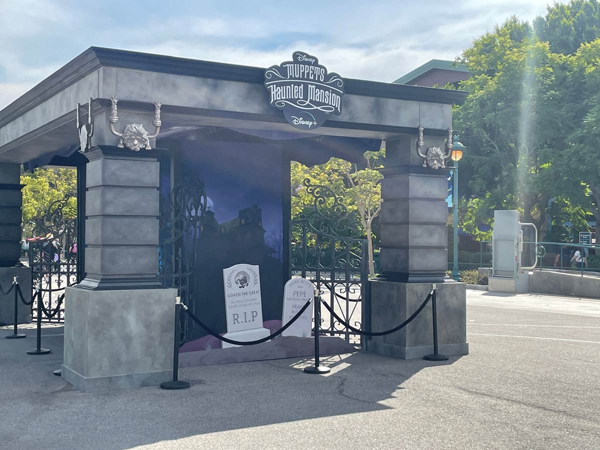 A brand new series of photo opportunities celebrating the release of Muppets Haunted Mansion have been placed along the walkway to and from the Mickey and Friends parking structure at the Disneyland Resort.