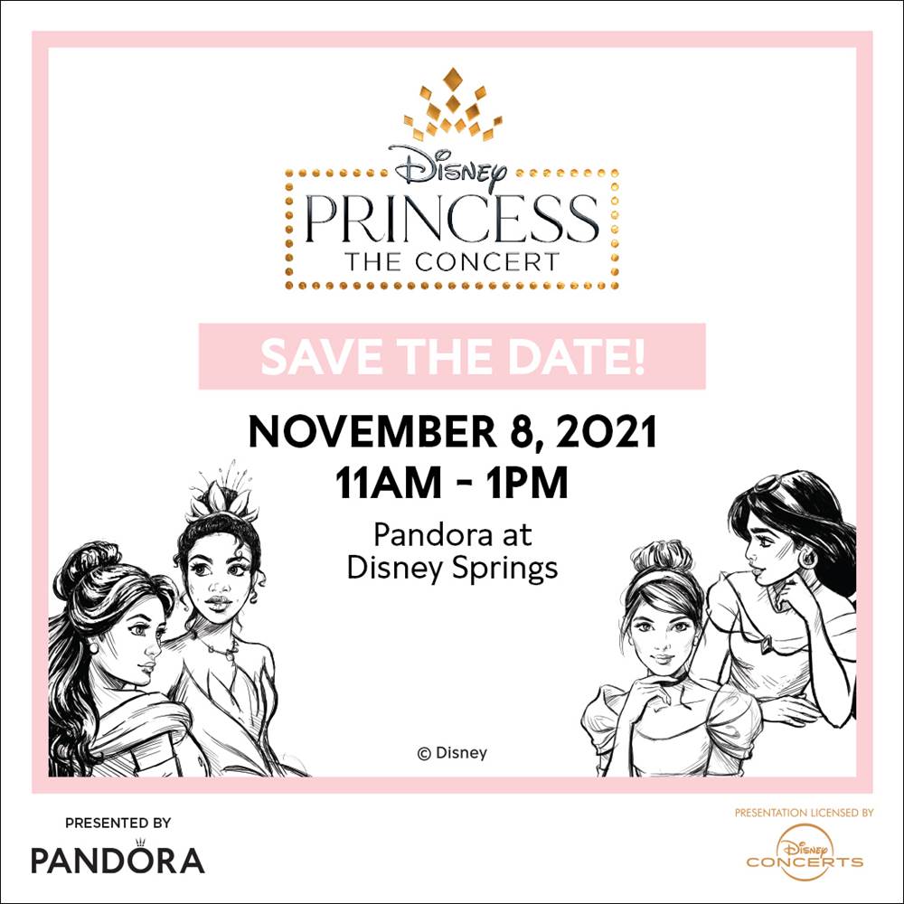 - Disney Springs has taken to their official Twitter account and revealed to fans that the cast of Disney Princess - The Concert will be heading on hand at the Pandora location in Walt Disney World’s shopping, dining, and entertainment district from 11:00 AM to 1:00 PM on November 8th.