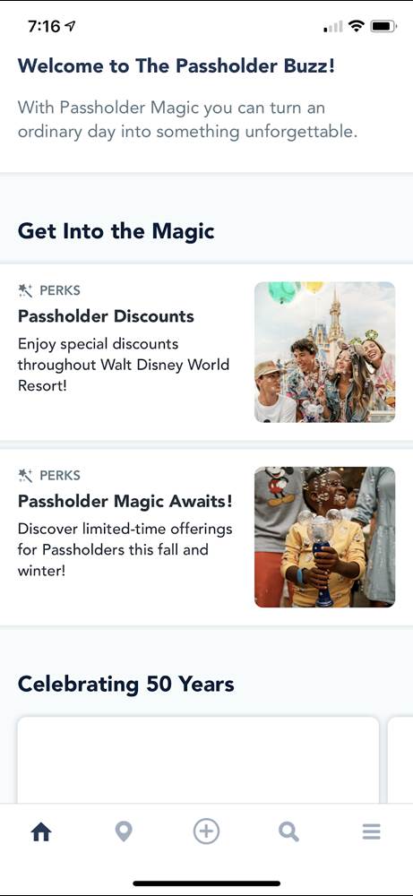 - The content in The Passholder Buzz section of the My Disney Experience App will likely be continuously changed and cycled out as time goes on, especially with all the new activities and events as part of the Walt Disney World 50th anniversary celebrations.