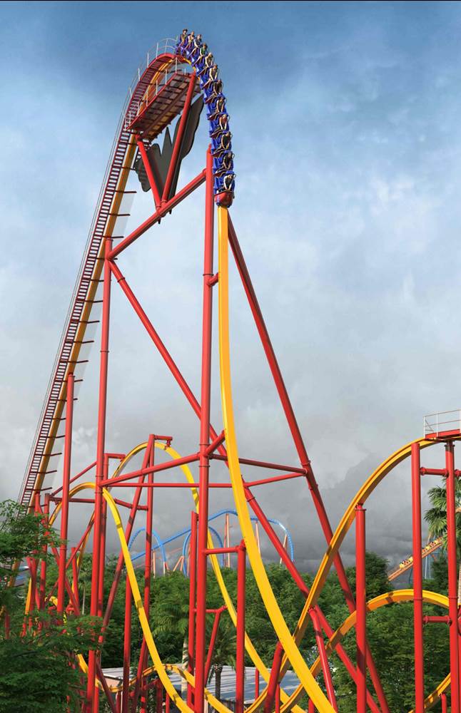 - This coaster will be the tallest and longest single-rail coaster from Rocky Mountain Construction on the planet. Riders will fly through over 3,300 feet of track, at 13 stories and up to 58 miles-per-hour.