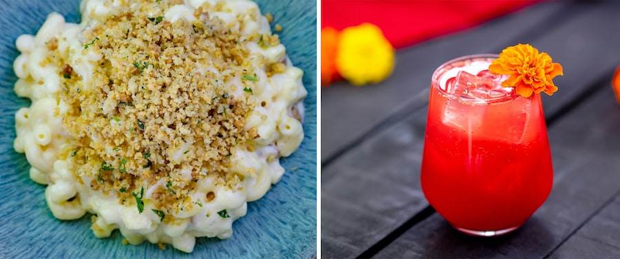 - Esquites Carnitas Mac & Cheese featuring Oaxaca and Cotija cheeses with spiced puffed rice