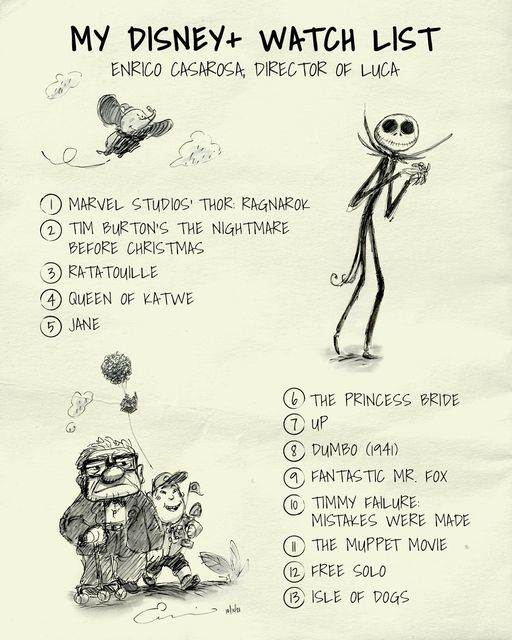 - Director of Pixar Animation Studios’ latest film, Luca, Enrico Casarosa has shared his personal watchlist as a way of celebrating the upcoming Disney+ Day on November 12th.