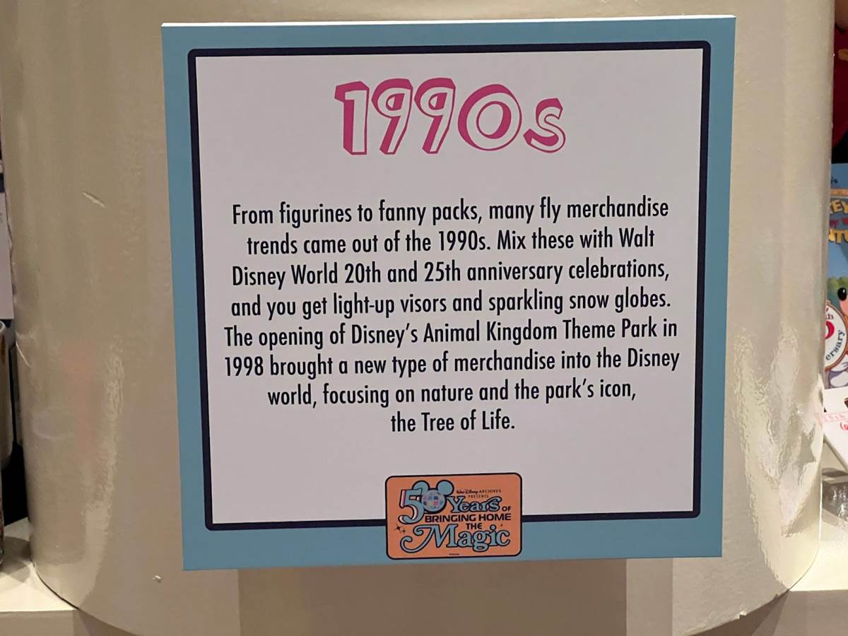 The second exhibit at Destination D23 takes us on a whirlwind tour of 50 years of merchandise at the Walt Disney World Resort.