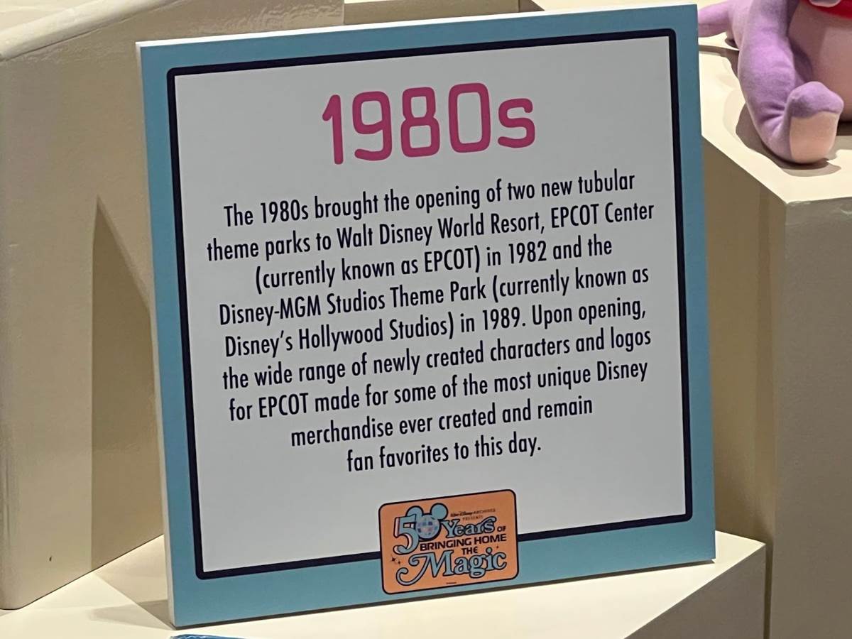 This exhibit is split into different sections with displays from each decade of Walt Disney World’s history.
