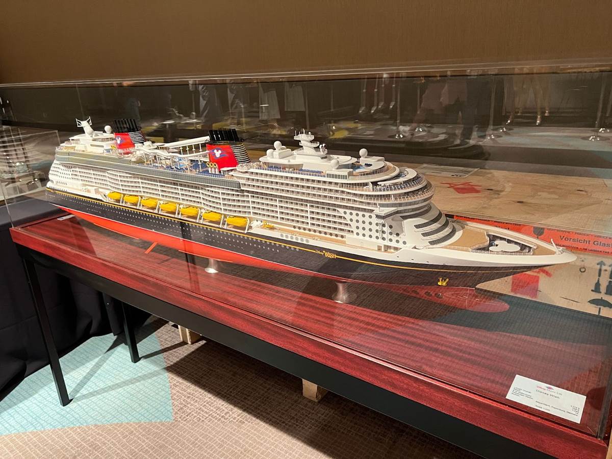 A model of the upcoming Disney Wish cruise ship.