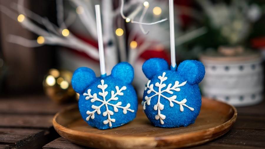 - Snowflake Apple – Granny Smith apple dipped in caramel and white chocolate decorated with blue sanding sugar