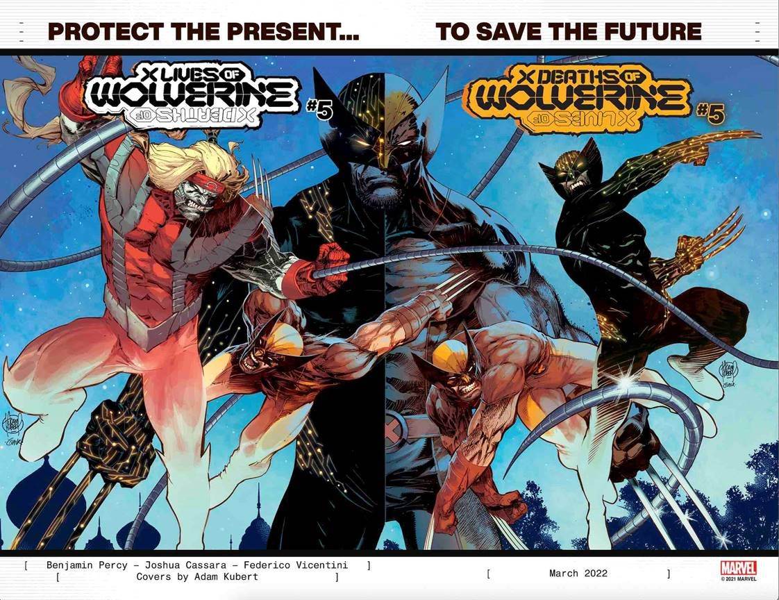 - Check out legendary Wolverine artist Adam Kubert’s connecting covers for “X Lives of Wolverine #5” and “X Deaths of Wolverine #5” and be there for the game-changing finale this March.