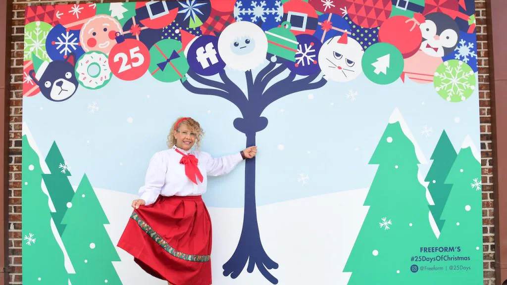 A new photo op celebrating Freeform’s 25 Days of Christmas event has popped up outside Disney’s Days of Christmas store in Disney Springs.
