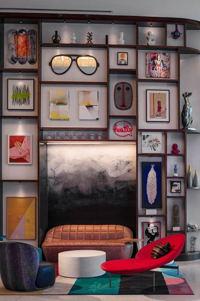 - While the exterior boasts a sleek appeal, its interiors are awakened by a multicolored collection of 500 artworks, patterns, jaw-dropping custom furniture, bespoke wall coverings and more.