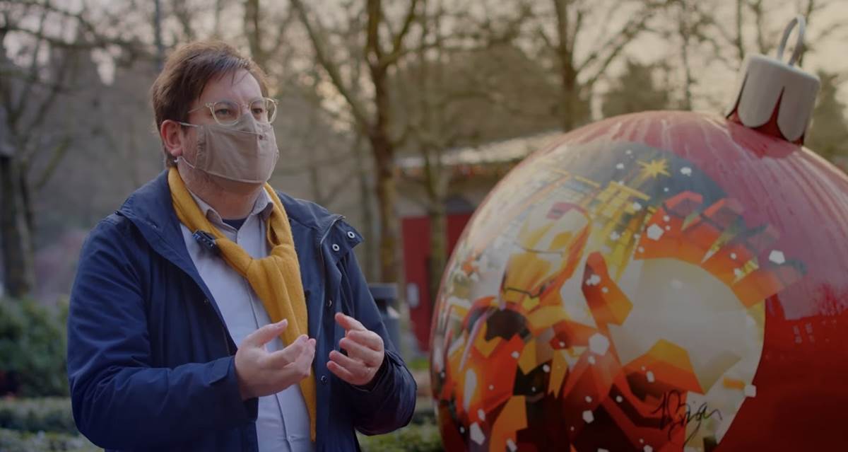 - The video highlights a brand new decoration just for the holidays, an ornament with Iron Man artwork on it, located right next to the hotel’s Christmas tree.