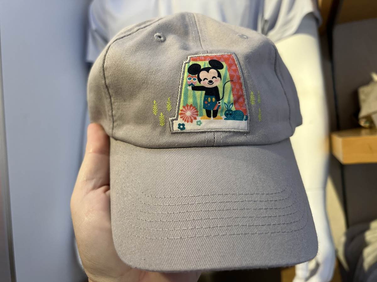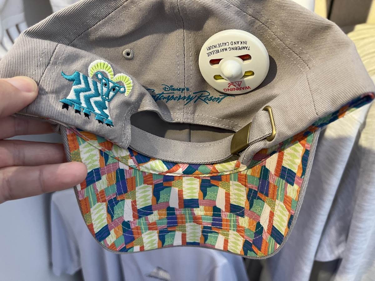 There is also a more generic line of Mickey and Minnie Mouse merchandise showcasing the two characters at the resort along said phrases like “Hello Sunshine!” We are particularly fond of this baseball cap ($27.99) that features the legendary goat that can be found in the aforementioned Mary Blair mural in the hotel’s Grand Canyon Concourse.